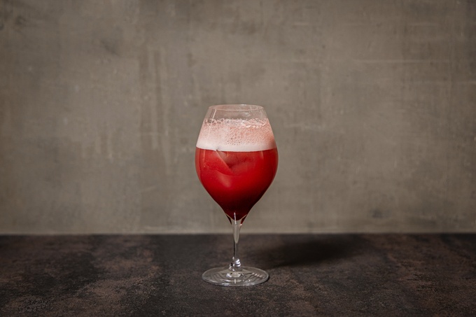 「フルーツカカオのベリーソーダ」は、カカオの果肉とカンパリ、リンゴンベリーを炭酸で割った、フルーティーで飲みやすいチョコレートカクテル。