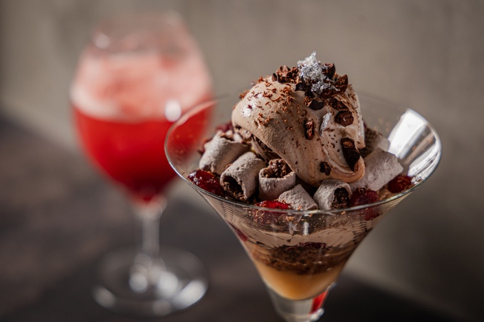 商品名:「クランベリーと凍頂烏龍薫るビーントゥバーチョコレートパフェ」