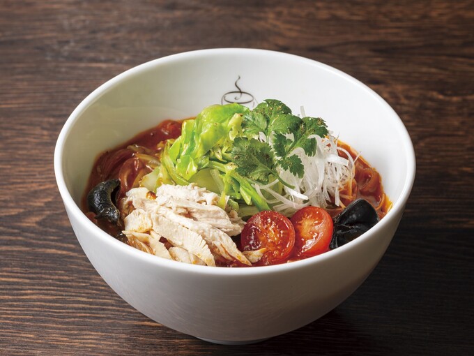 具材にはキクラゲ・蒸し鶏・トマト・キャベツなど、厳選した6種類を組み合わせています。