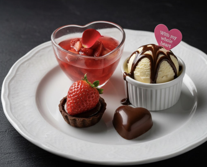 2026年2月10日(火)〜15日(日)まで、『鉄板焼 契』で提供する「バレンタインディナーコース」をご紹介しました。