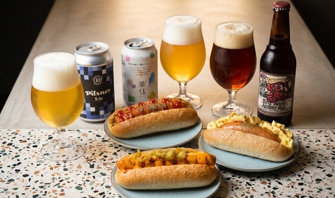 3種類のホットドッグに合うクラフトビールは“ビアソムリエ”の資格を持つスタッフが選定。