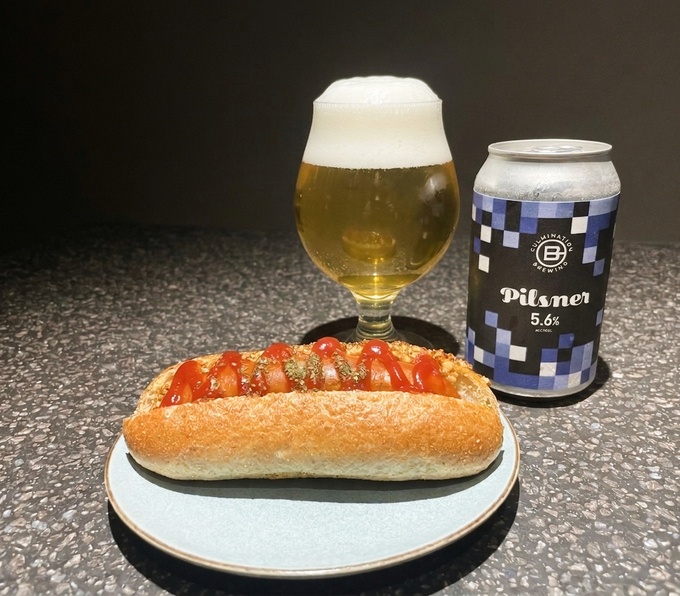 シンプルなホットドッグの美味しさを引き立てるのは、キレのあるピルスナー。