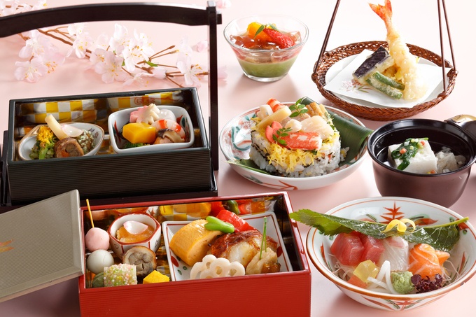 花見団子や旬の食材を使用した色鮮やかな料理を手提げ弁当に盛り込んでいます。