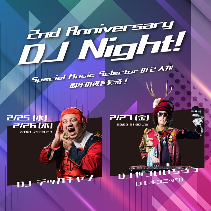 「2周年記念感謝祭」では、芸能人が登場するDJイベントも同時開催!