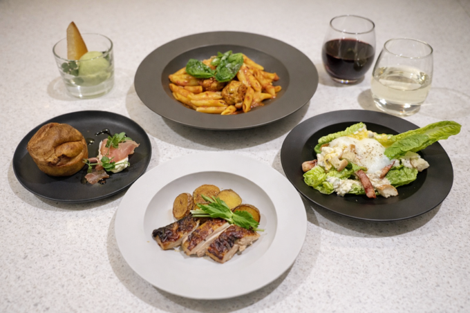メインには、ジューシーに焼き上げたチキンとほくほくポテトの王道コンビ「ローストチキン&ポテト」や、旨味たっぷりのミートボールを絡めた「ミートボールのトマトペンネ」が並び、ボリューム満点のラインナップ。