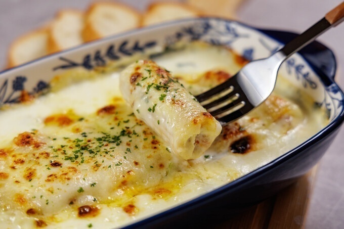 筒型のショートパスタに和牛の旨みたっぷりのミートソースを詰め、280度の高温オーブンで焼き上げたひと品です。
