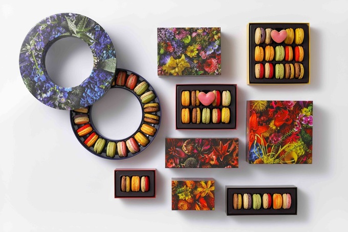 東信氏による芸術的な花々のパッケージと、妥協のないマカロンの味わいが融合した今だけの特別なコレクションです。