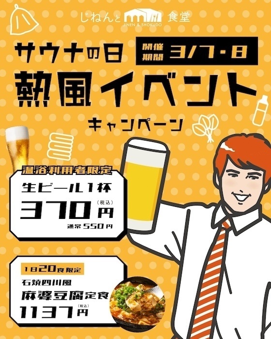 『力の湯』併設のレストラン『じねんと食堂』でも、サウナの日イベントを開催。