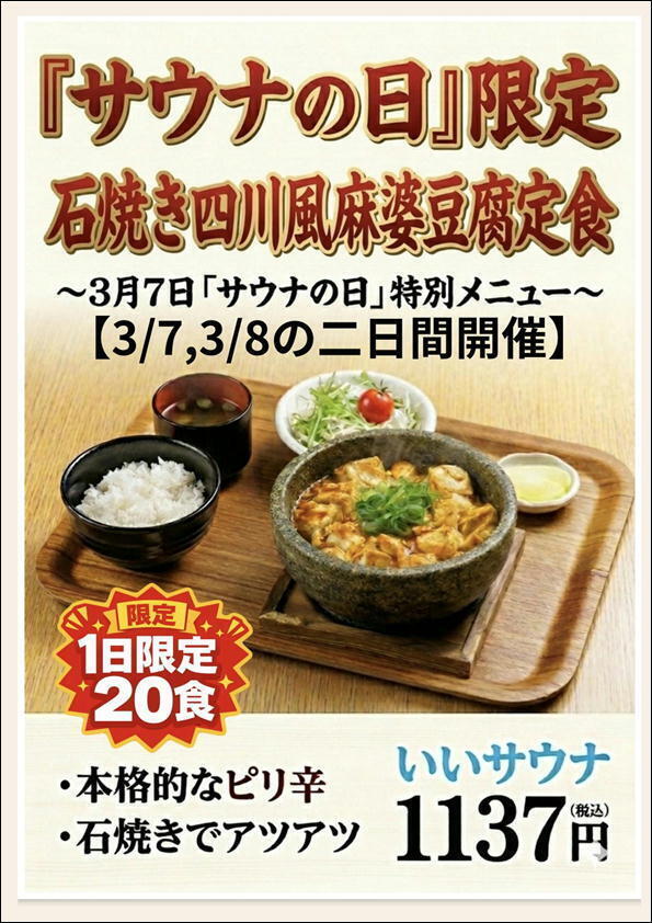 ・特別メニュー「石焼四川風麻婆豆腐定食」の販売 ※1日20食限定