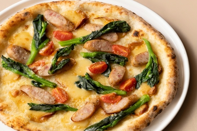 「菜の花とサルシッチャのピッツァ」は、ほろ苦い菜の花と肉の旨味が相性抜群。