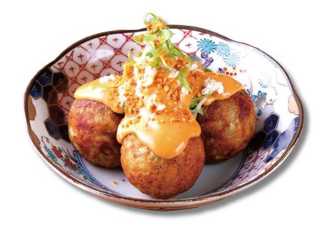 刺激的な四川風の麻辣マヨソースがたこ焼の旨みを引き立て、ハイボールなどのお酒と相性抜群。