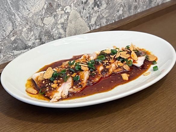 しっとり柔らかく仕上げた蒸し鶏に特製のピリ辛ダレをたっぷり絡めたこちらの一皿。山椒が華やかに香る「痺れラー油」の刺激が、鶏肉の旨みをグッと引き立てます。