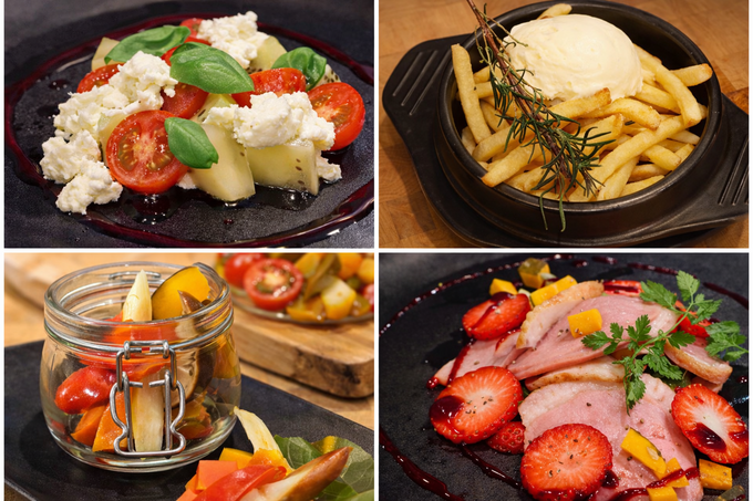 カプレーゼやピクルス、ホイップバターをのせたフライドポテトのほか、ガッツリ系の肉料理もラインナップしています。