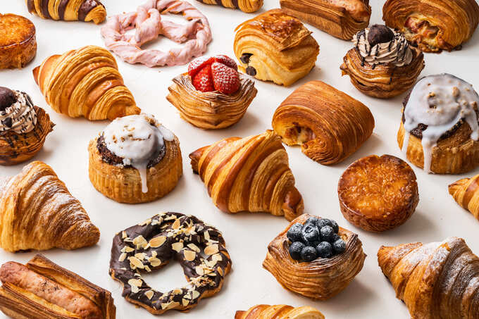 通常のクロワッサンに加え、フルーツデニッシュやシナモンロール、チュロスなど、クロワッサン生地を使用した多彩なパンをラインナップ。