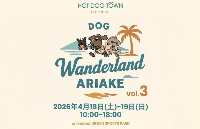 2026年4月18日(土)・19日(日)の2日間限定!入場無料のドッグフェス『DOG Wanderland Ariake vol.3』が、有明テニスの森駅から徒歩3分「livedoor URBAN SPORTS PARK」で開催。会場では、アジリティ体験やわんこプリクラ、屋内マルシェなど、愛犬とともに楽しめるコンテンツが目白押しです。ぜひこの機会に足を運んでみてください。
