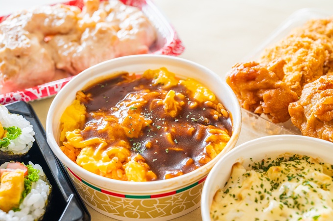「タコライス&ローストビーフ丼」「唐揚げ」