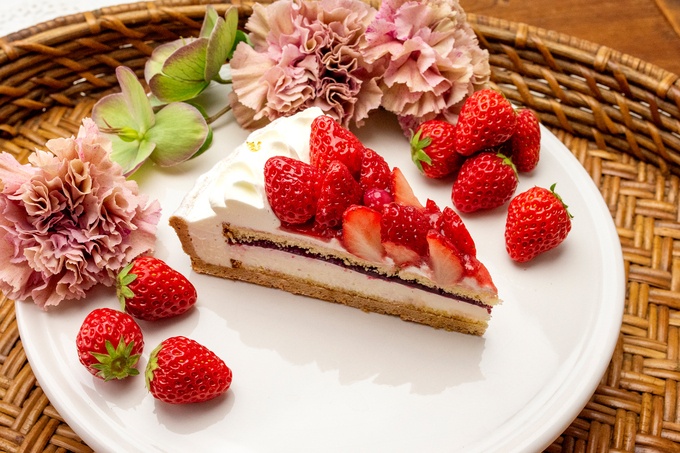 丸みのある立体的なクリームで花びらのようなやわらかさを表現し、トップには真っ赤なイチゴをたっぷりと飾って、印象的で特別感のあるひと品に仕上げています。