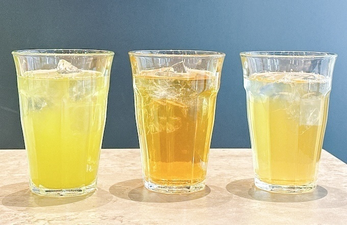 左から「緑茶ハイ(つゆひかり)」「 和紅茶ハイ(べにふうき)」「和ウーロンハイ(天竜つゆひかり)」