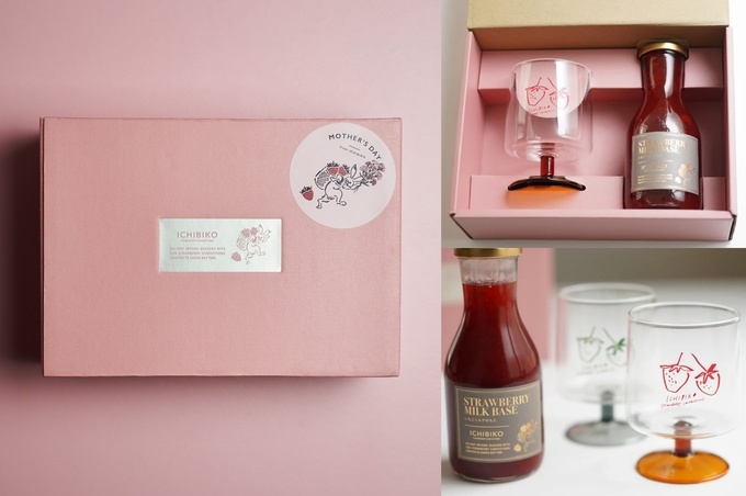 「【母の日限定】 ICHIBIKO ゴブレットグラス&いちごミルクのもとセット」4,980円(税込)