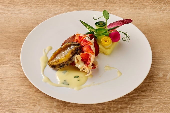 母の日(5/8〜10)は、お野菜のブーケを添えた「オマール海老と鮑 柑橘風味のバターソース」が登場します。
