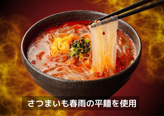麺には、スープとよく絡むさつまいも春雨の平麺を採用。