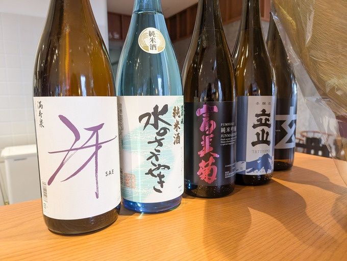 最大の特徴は、富山県内全19蔵の日本酒を常時60種類以上も取り揃えている圧倒的なラインナップ。