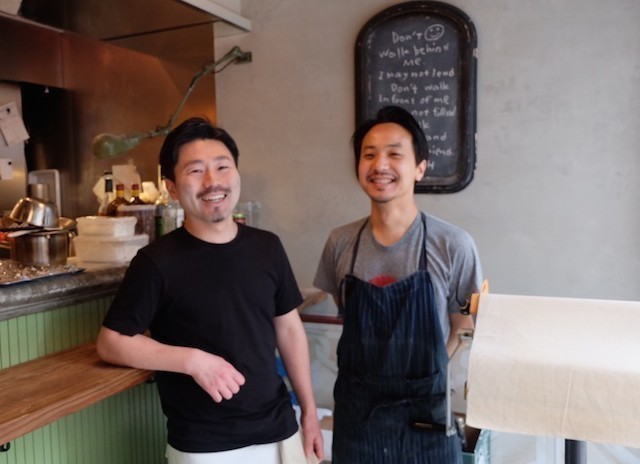 オーナーシェフの原太一氏(右)と、オーナーパティシエの後藤裕一氏(左)。ともにトロワグロ出身