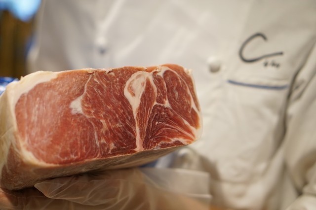 お店でしか食べられない”生ハム専用スライサー”を使った「極薄生ハム」